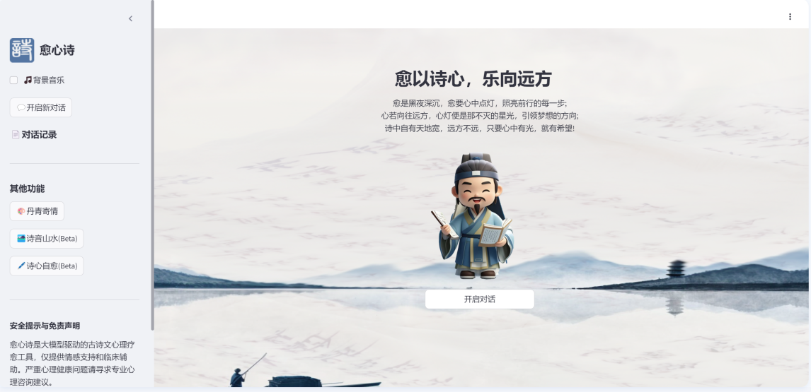 Based on current social mental health trends, this project leverages the aesthetic and therapeutic value of traditional Chinese poetry, innovatively integrating traditional poetry culture with modern artificial intelligence technology to create a smart system that combines poetry therapy, art creation, and psychological counseling. The system provides an immersive poetry therapy interaction platform through multi-sensory experiences that integrate visual and auditory elements. Its core functions include matching poetic scenarios with emotional guidance based on large language models, intelligent assistance for ancient poetry composition, and multimodal artistic translation of poetry into images and sounds. It not only meets individuals' daily psychological therapy needs but can also serve as an auxiliary tool for professional psychological interventions, offering a unique solution for the digital transformation of ancient poetry utilization and the art therapy industry.